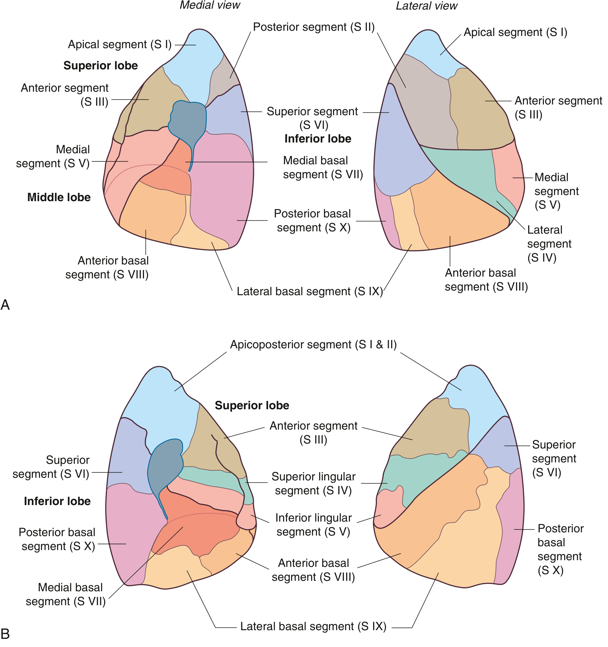 Bronchopulmonary segments: Right lung (A) and Left lung (B) — Gray's Anatomy for Students