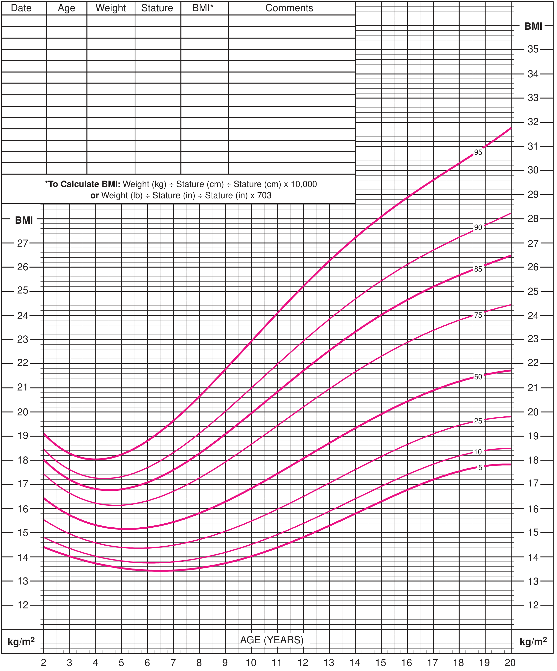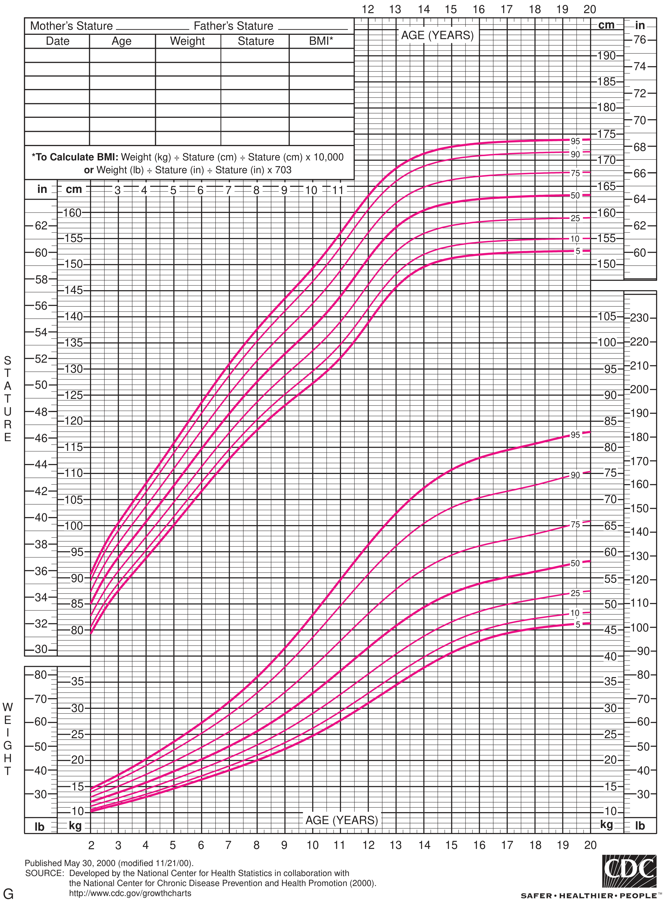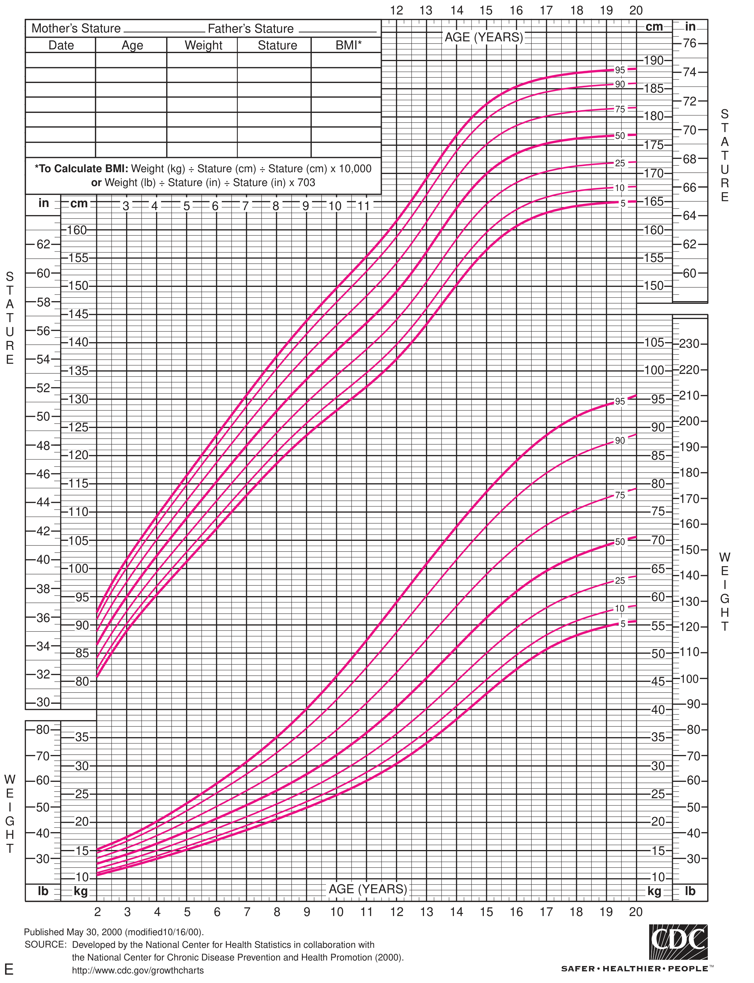 Source: Textbook of Family Medicine, 9th Edition — CDC/NCHS Growth Charts (2000), p. 553–557