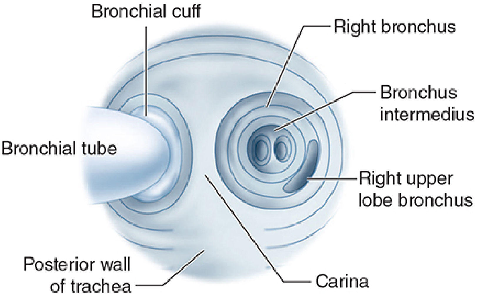 - Bronchial cuff (typically colored blue) — distal, seals the intubated bronchus