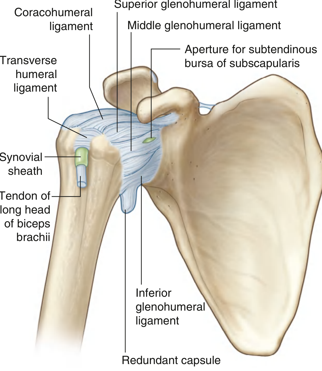 | Capsular ligaments | Superior, middle, and inferior glenohumeral ligaments |