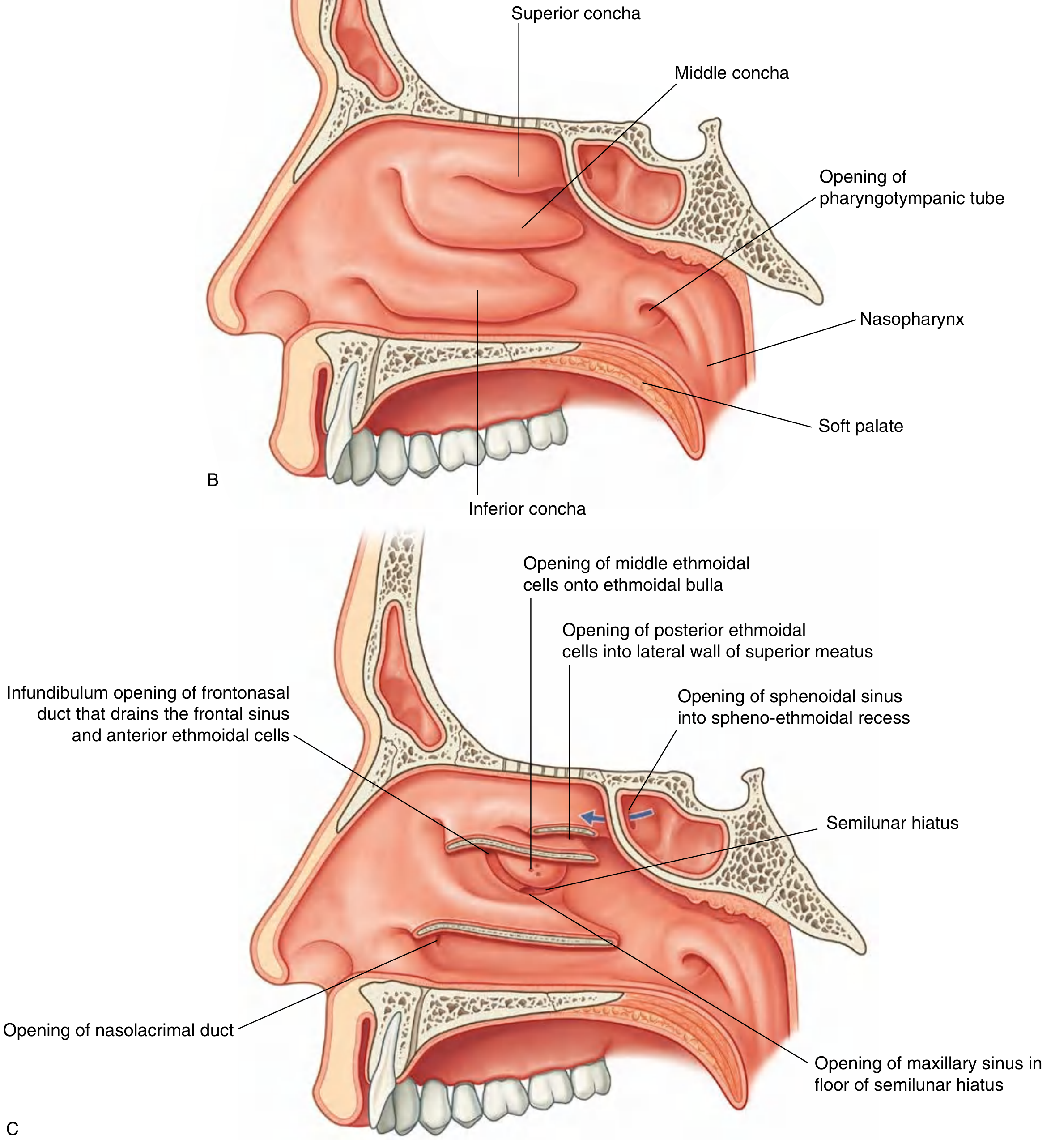 2) Nasal cavity and passages (topography)