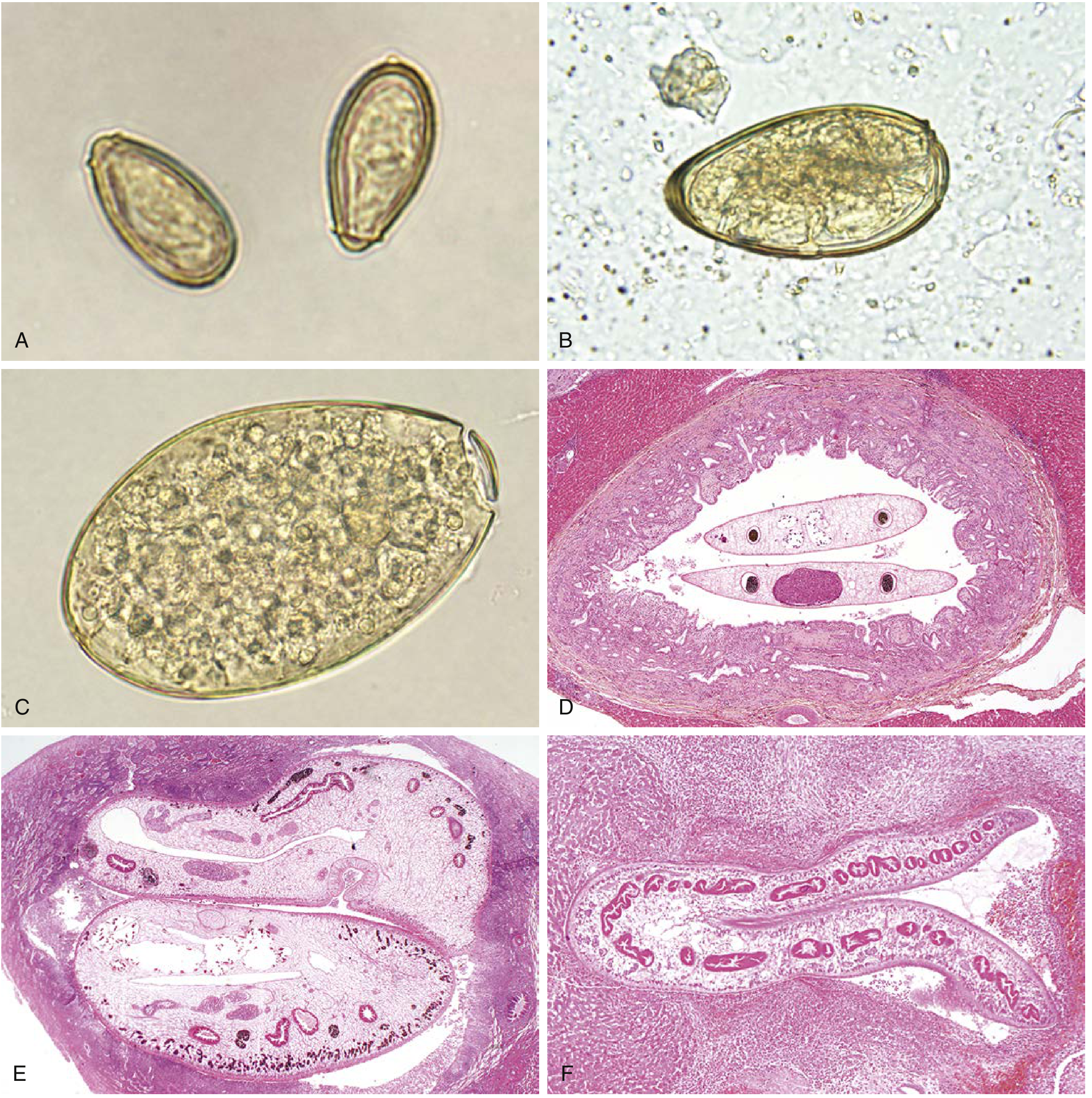 | Liver biopsy | Rarely performed; flukes may be seen migrating through parenchyma (large size, cuticular spines, multiple intestinal branches on cross-section distinguish Fasciola from Clonorchis/Opisthorchis) |