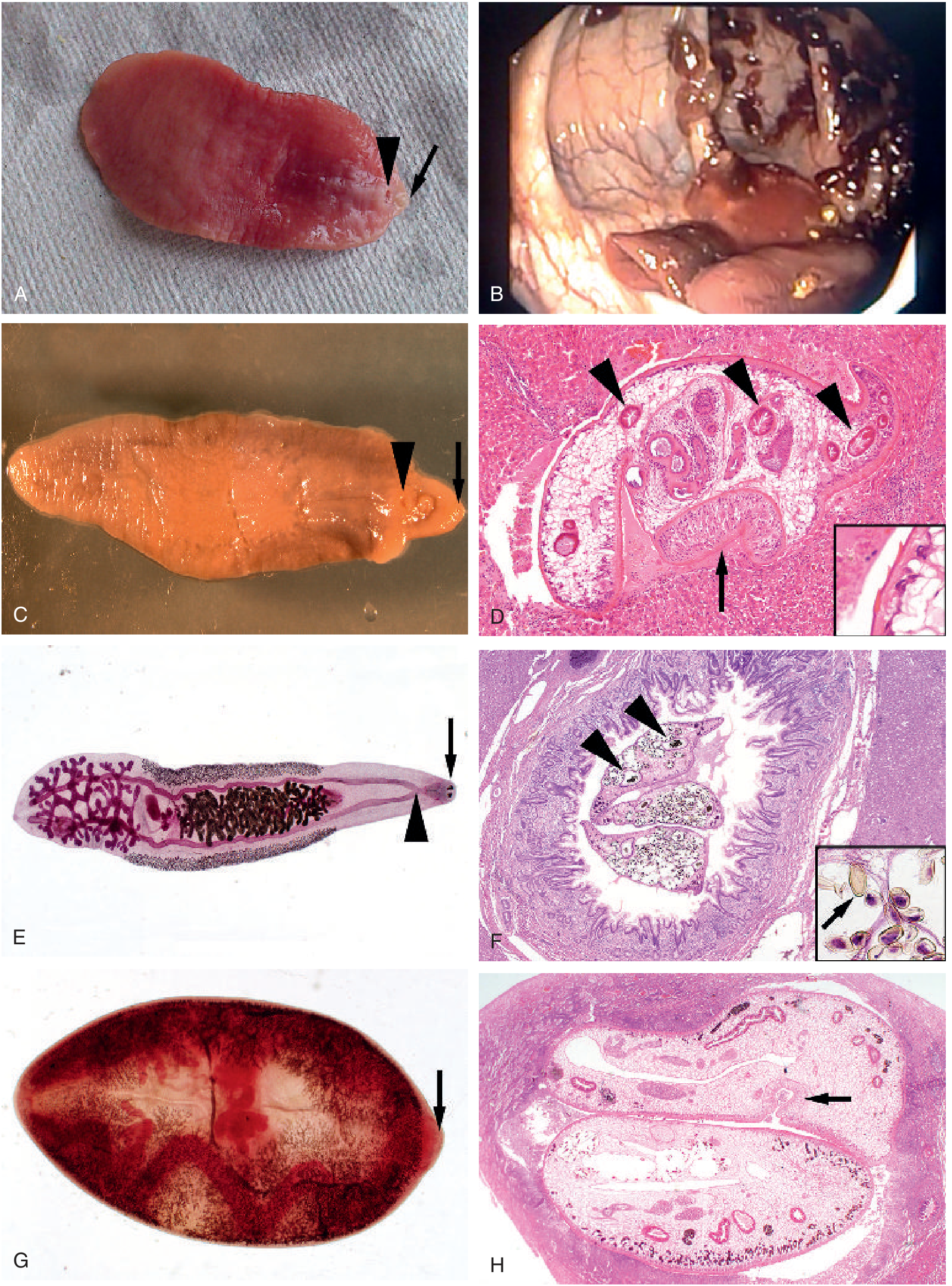 - Ectopic migration (rare): subcutaneous tissue, pancreas, eye, brain, stomach wall — causing site-specific manifestations including ectopic pancreatitis (classic ERCP case: flukes extracted from the common bile duct causing acute pancreatitis).