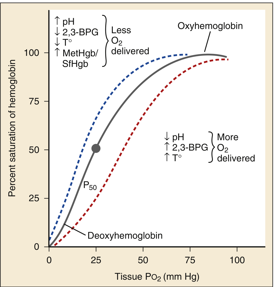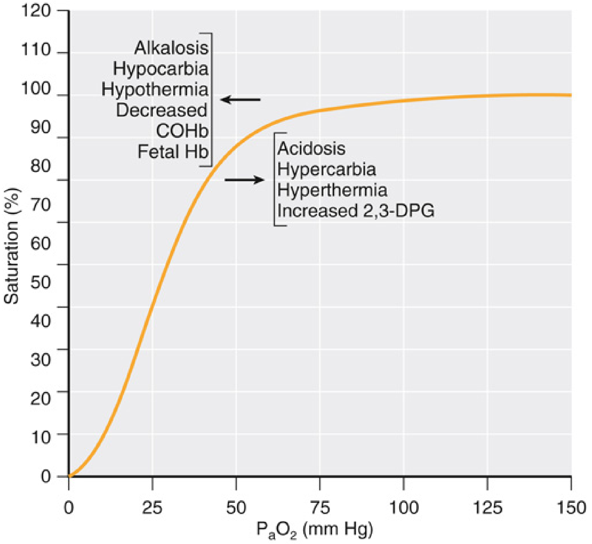 Fig 37.2 — Miller's Anesthesia 10e: The oxyhaemoglobin dissociation curve and its shifting factors
