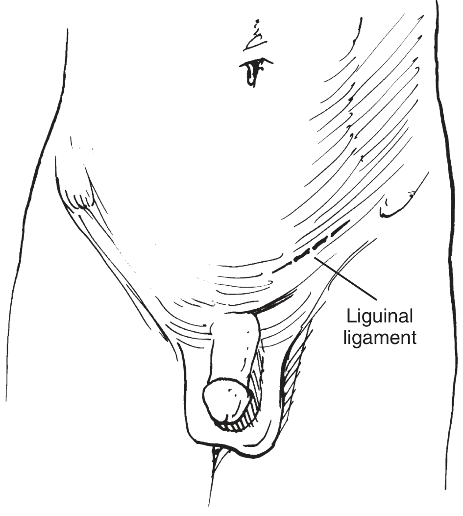 FIGURE 117.1 — Curvilinear incision for radical orchiectomy (Hinman's Atlas)