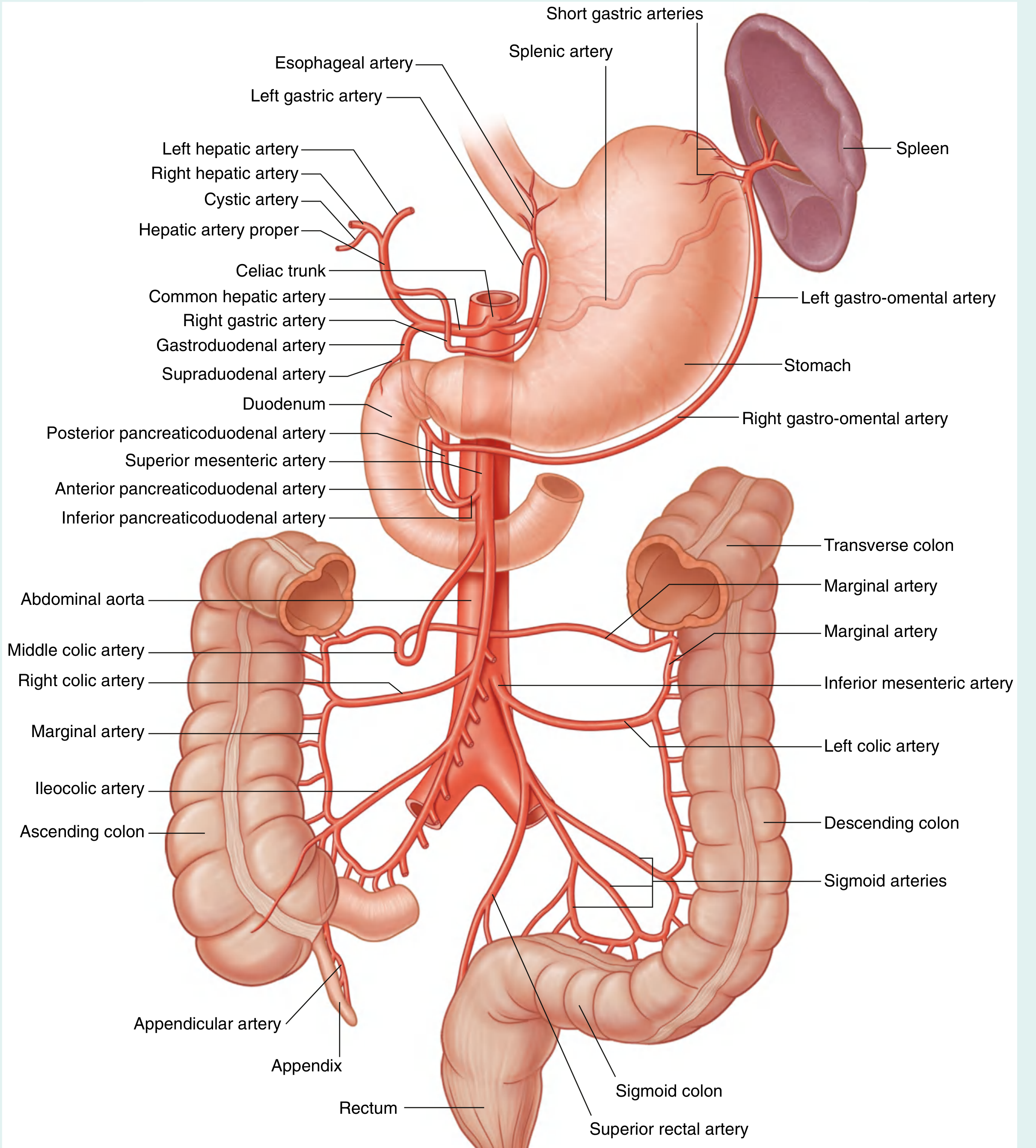 - Superior mesenteric vein — from small bowel, cecum, ascending/transverse colon