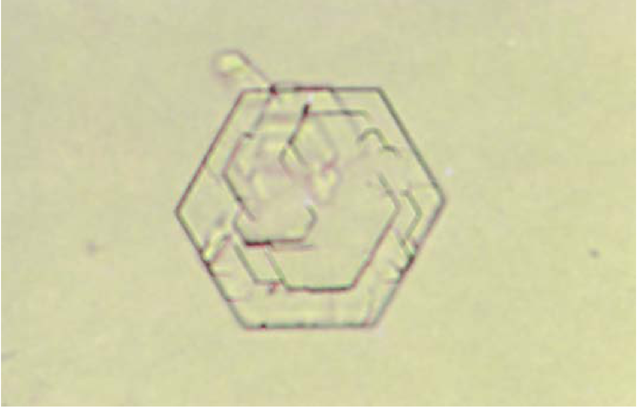 Cystine crystals β hexagonal, laminated (Γ200)