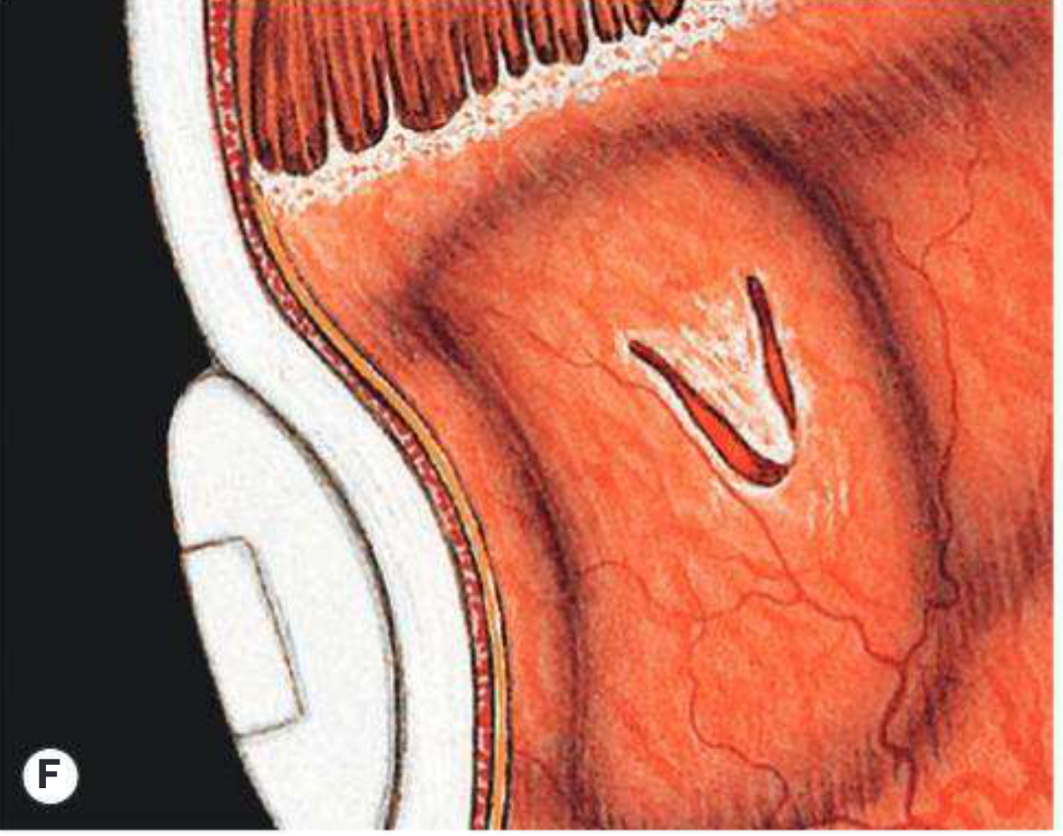 | Fish-mouthing of U-tear | Radial folds at the edges of a U-tear keep it open — requires radial explant or gas tamponade |