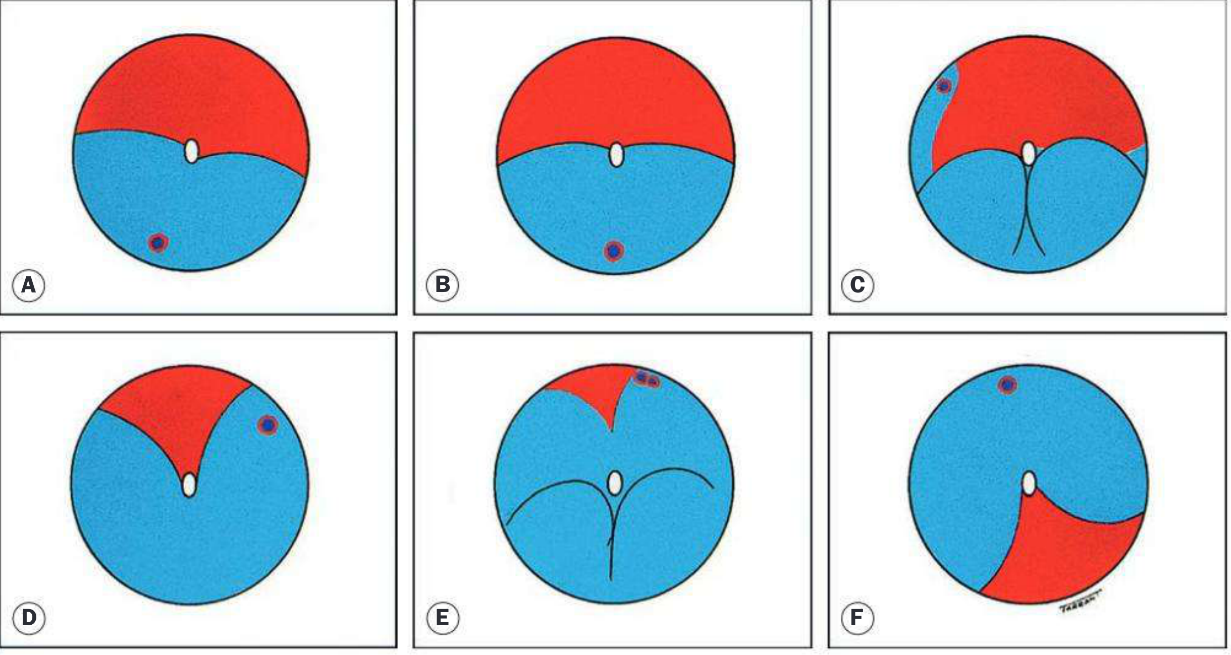 | Circumferential (broad arc) | Multiple breaks in one or two quadrants |